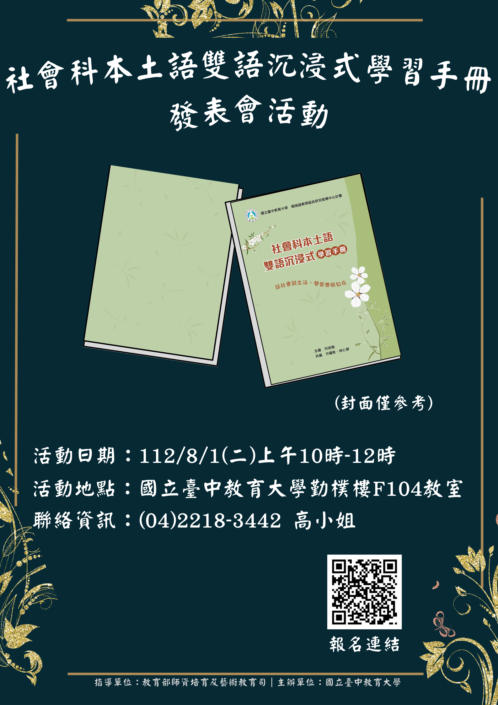 四、活動日期及地點:112年8月1日(星期二)上午10時至12 時,國立臺中教育大學勤樸樓F104教室。