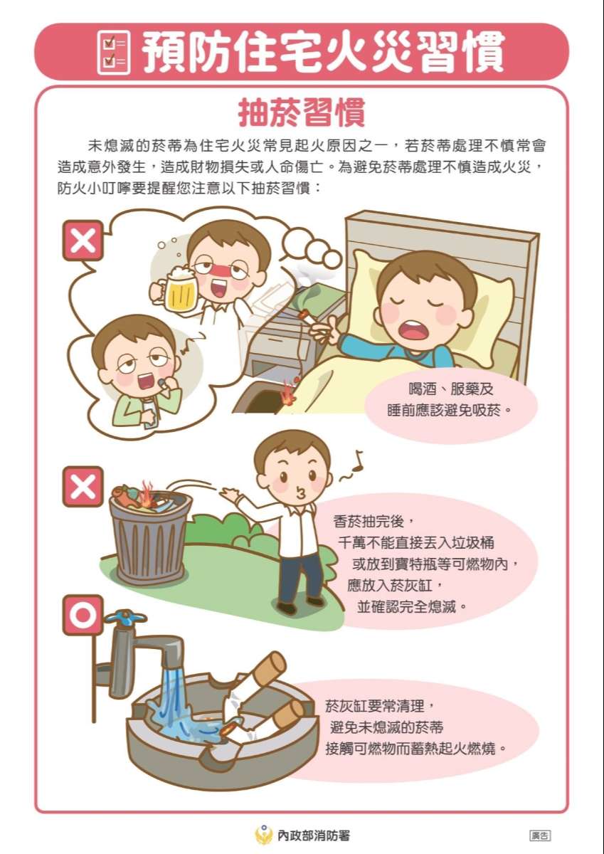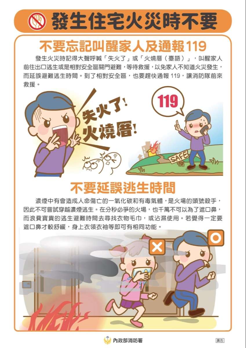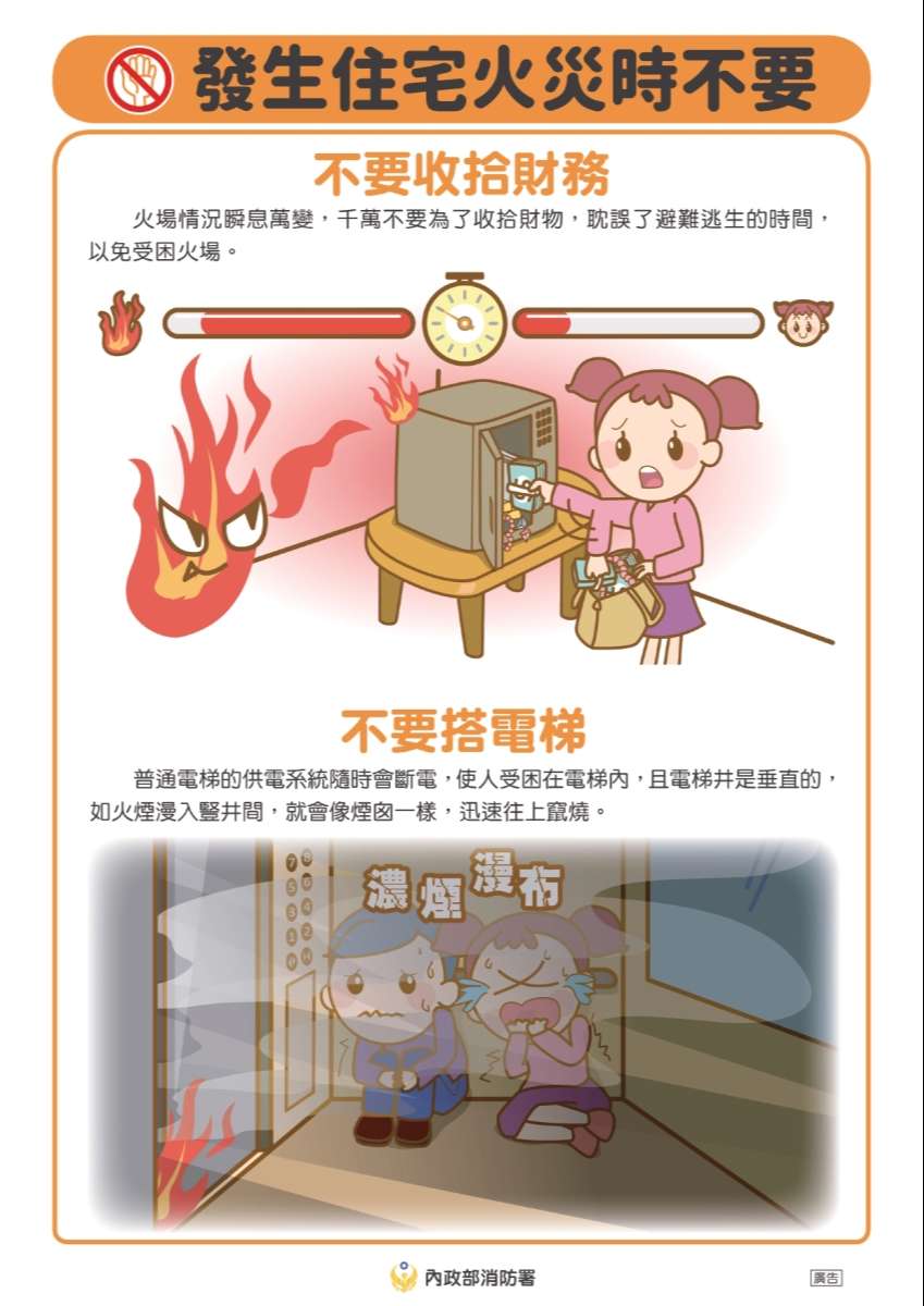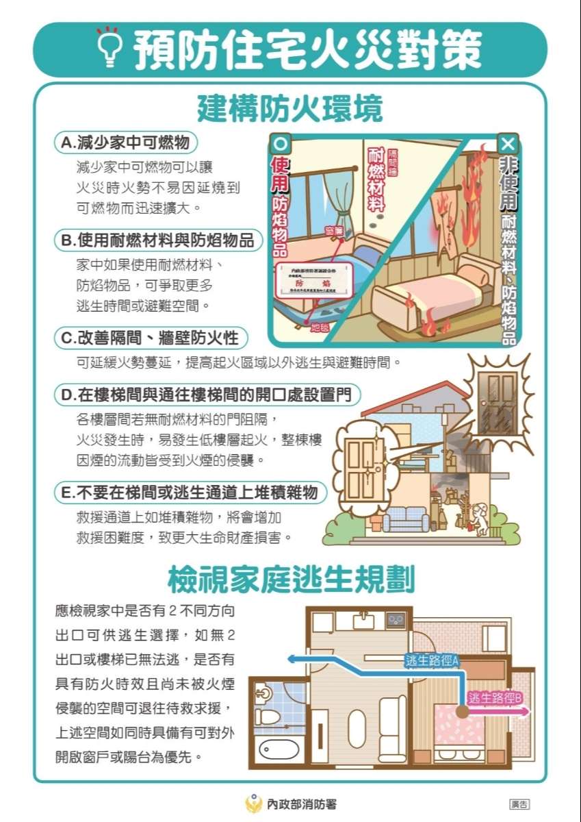 二、住宅用火、用電等要注意安全,並防範一氧化碳中毒及瓦斯。