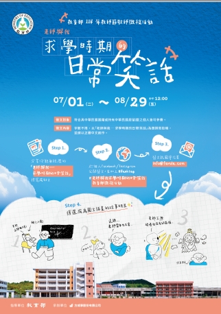 二、旨揭活動重點說明如下: (一)徵文日期:自114年7月1日(星期二)起至8月29日(星 期五)中午12:00止。 (二)徵文對象:符合具中華民國國籍或持有中華民國居留證 之個人皆可參賽。 (三)徵文內容:字數不限,以「老師與我—求學時期的日常 笑話」為題撰寫投稿,並請以正體中文創作。 (四)參加辦法: 1、步驟1:於社群平臺(臉書FB、Instagram),用貼文 方式寫下,以「老師與我—求學時期的日常笑話」為題的文稿。 2、步驟2:將貼文設為「公開」,並加上Hashtag「#老師 與我求學時期的日常笑話、#教育部徵稿活動」。 3、步驟3:將真實姓名、發文截圖寄至業務信箱: info@favula.com。 (五)注意事項:欲參加本活動者,請先詳細閱讀活動辦法, 參加本活動者視為同意本活動辦法。本部保有活動調 整、增刪之權利,如有任何爭議,皆以活動單位之解釋 及對本活動的最終決策結論為準。
